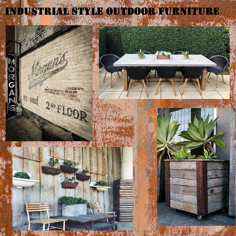 Let’s look at some Industrial Style Outdoor Furniture ideas, with the use of our outdoor cement & acacia wood furniture, different wicker & tub chair options, lighting, walls, signs, wall art, furniture pieces, planters and accompaniments.