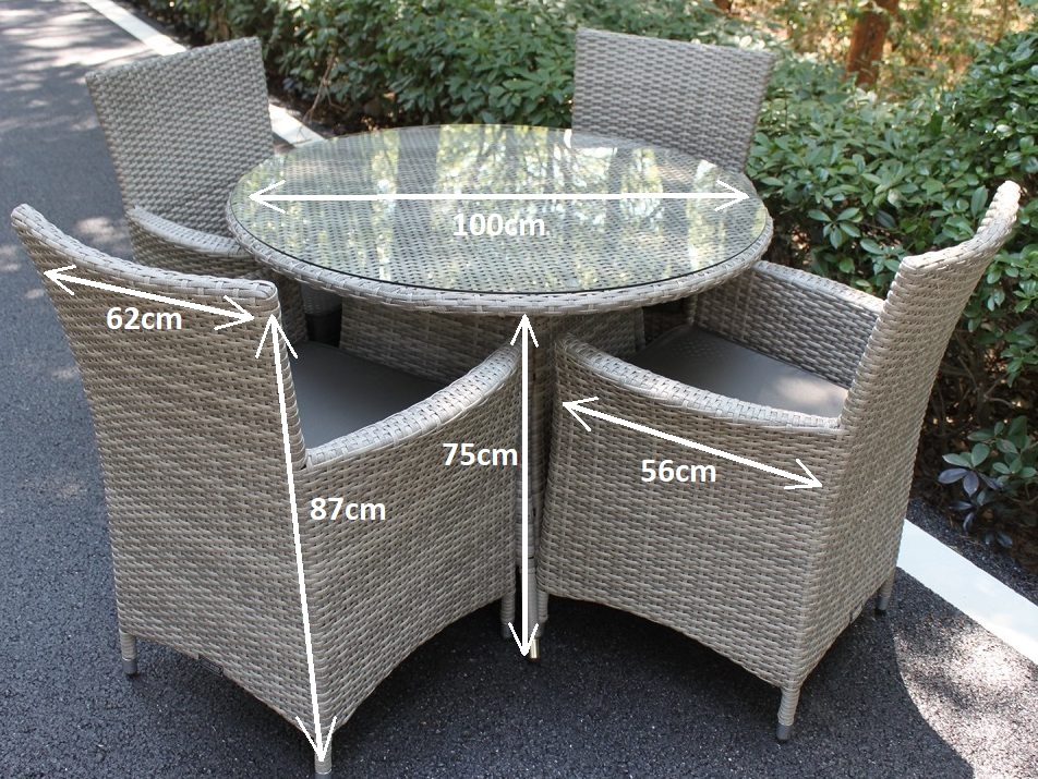 This setting is comfortable and spacious featuring a dining table and six matching dining chairs. All 5 pieces have been manufactured using high quality UV stabilised rattan covered over a heavy-duty powder coated aluminium frame. The table has been topped with a piece of clear, tempered glass, whilst each of the chairs come complete with a plush 6cm thick seat cushion, available in a variety of colours. Weather covers for the Gartemobe 5-piece dining set are a custom fit and go over the chairs and table.