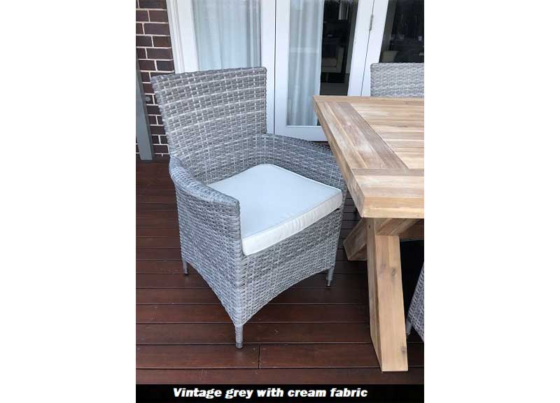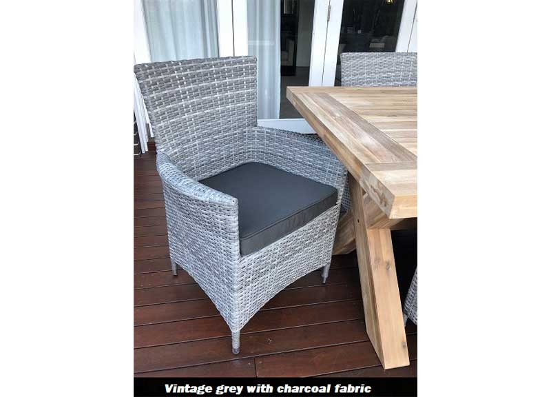 The dining chairs feature powder coated aluminium frame covered with UV stabilized, weather resistant rattan.