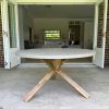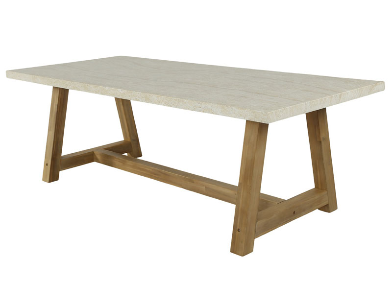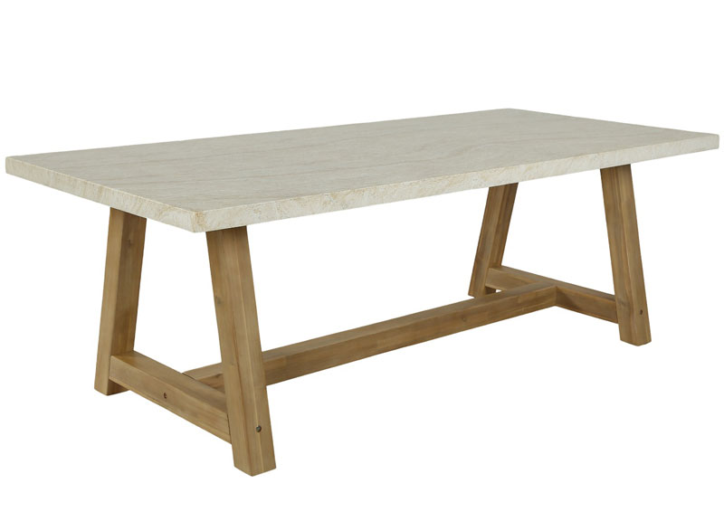 - Veltis travertine table 2.4m with acacia legs